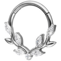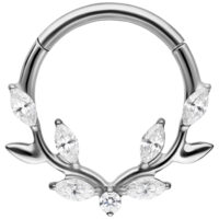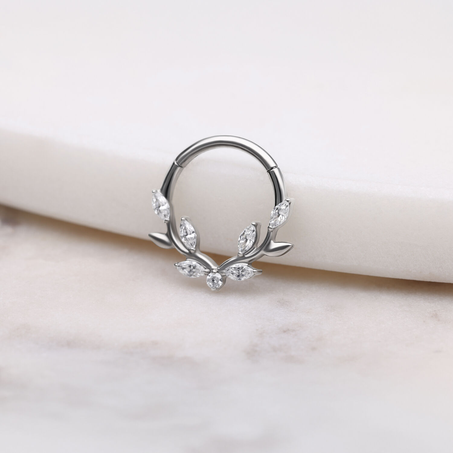 Lovely Crystal Leaf Septum Clicker – Titanium