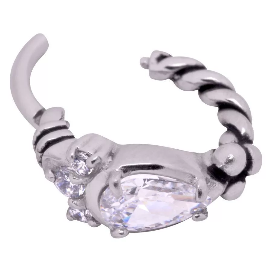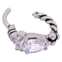 This high-quality hinged ring stands out particularly by its three small Zirkonia crystals and the special drop-shaped zirconia, which bring you already from a distance to radiate. Let your creativity run free, because you can use this ring as well as for every piercing on the ear. It is particularly suitable for your Helixpiercing. Due to its hinged closure, it is super easy to exchange your piercing without help.