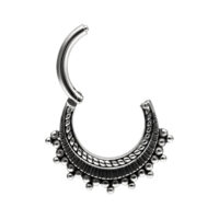 Our beautiful Native Hinged Clicker is made from high-quality stainless steel and is ideal for your septum or daith piercing. The piercing has a curved hinge bar, which makes it easy for you to insert the piercing – and all without any help!