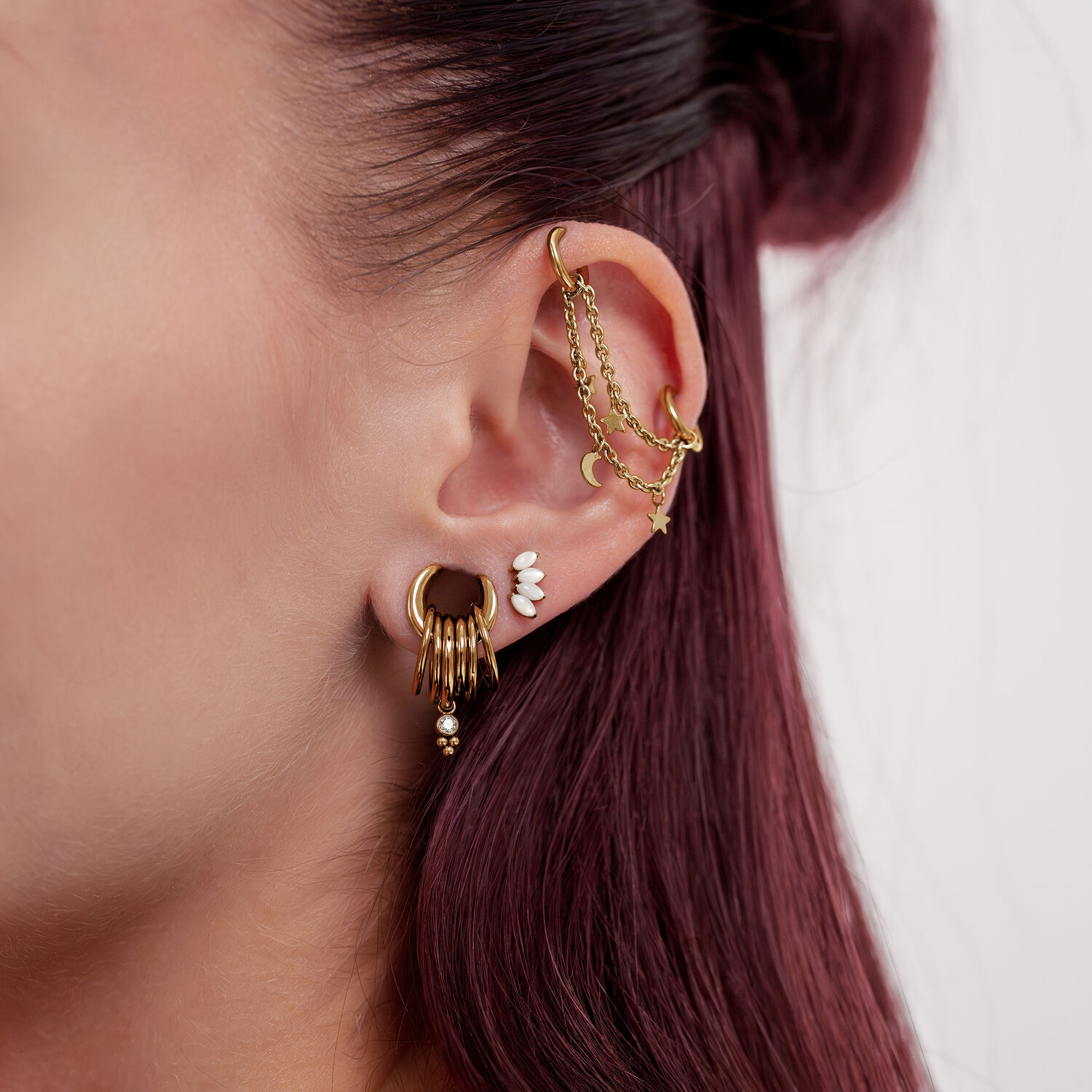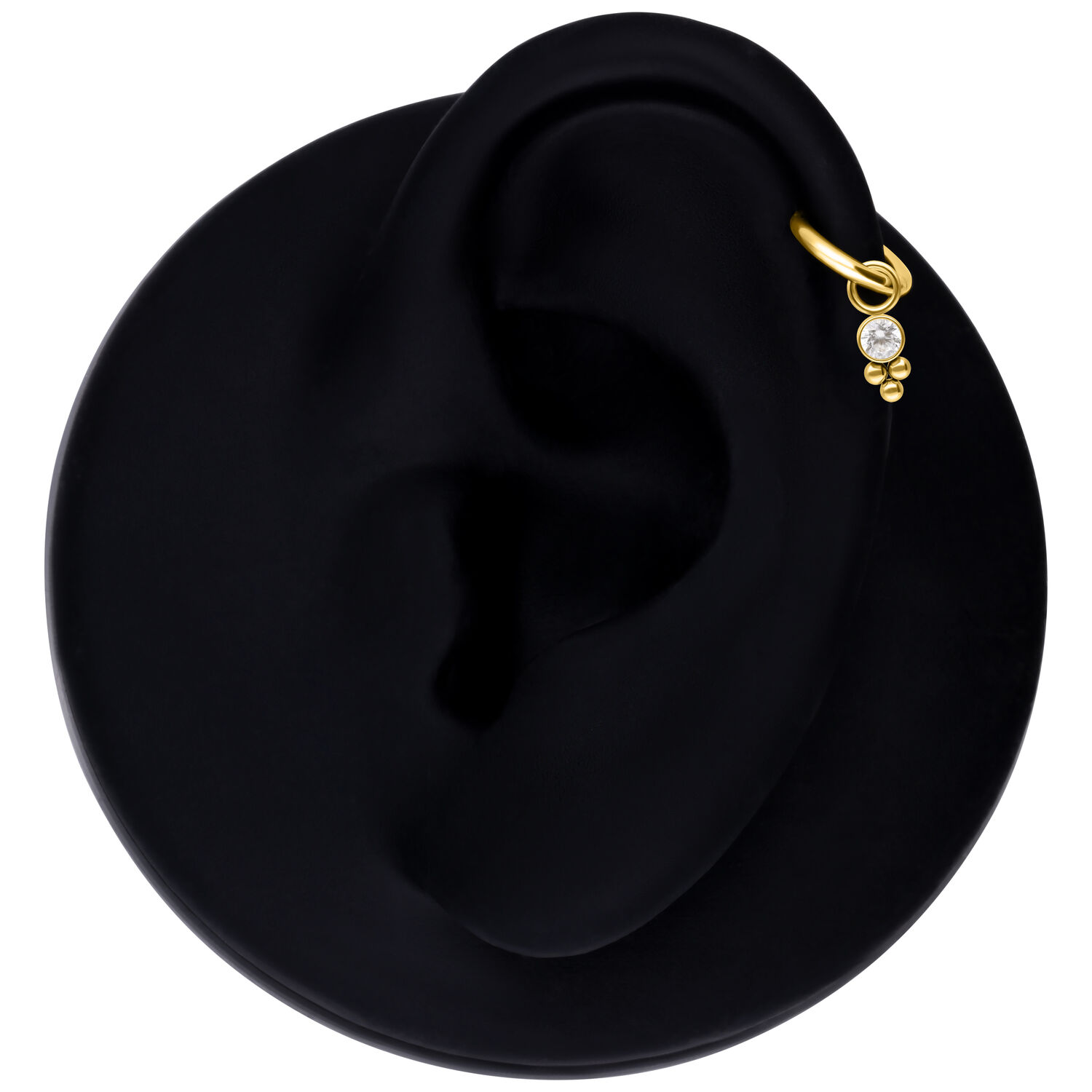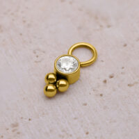 The pendant is ideal for wearing on a piercing clicker and is perfectly suited for helix, rook, vertical helix or lobe placements. A modern detail for those who appreciate clean shapes with a touch of sparkle.