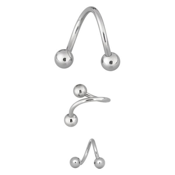 The spiral is available in 1.2 mm thickness with an inner diameter of 8.0 mm and two 4.0 mm balls. In the thickness 1.6 mm it is available with an inner diameter of either 10.0 or 12.0 mm, each with two 5.0 mm balls.