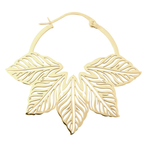Steel Highline“Abey” Leaf Hoop Earrings – Golden Metal
