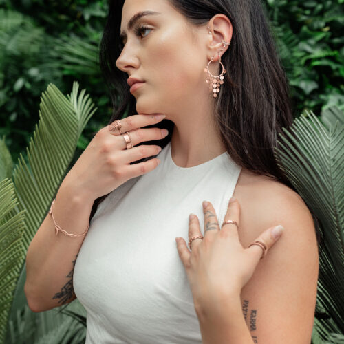 Steel Zirconline + 3 othersDangling Snowflake Hoops – Rosegold