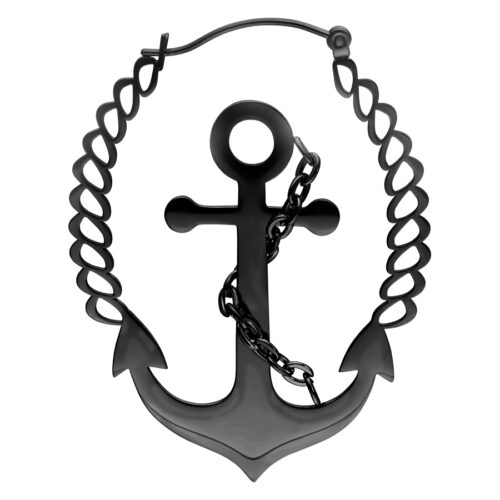 Steel HighlineSilver Anchor Earrings with Chain Rope – Black Metal